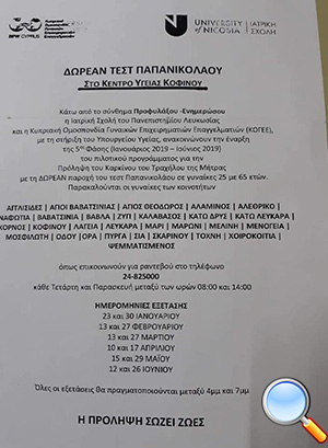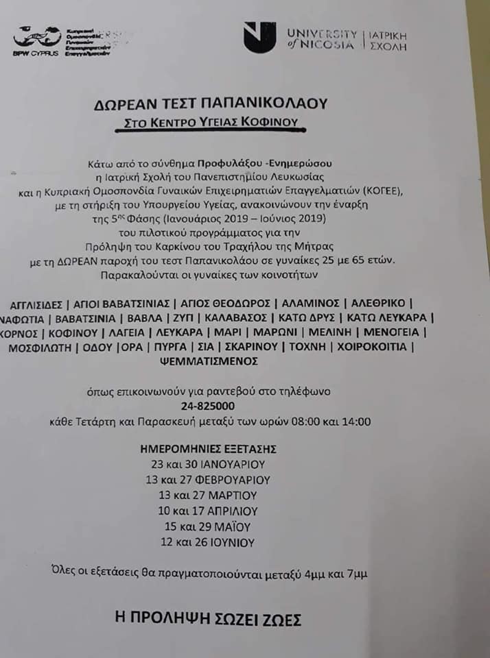 Δωρεάν Τέστ Παπανικολάου στο Κέντρο Υγείας Κοφίνου