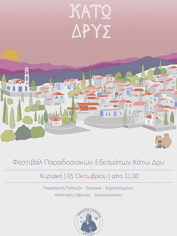 Σας περιμένουμε όλους στον Κάτω Δρυ, για να ζήσουμε μαζί μια γιορτή παράδοσης, γεύσεων και πολιτισμού!